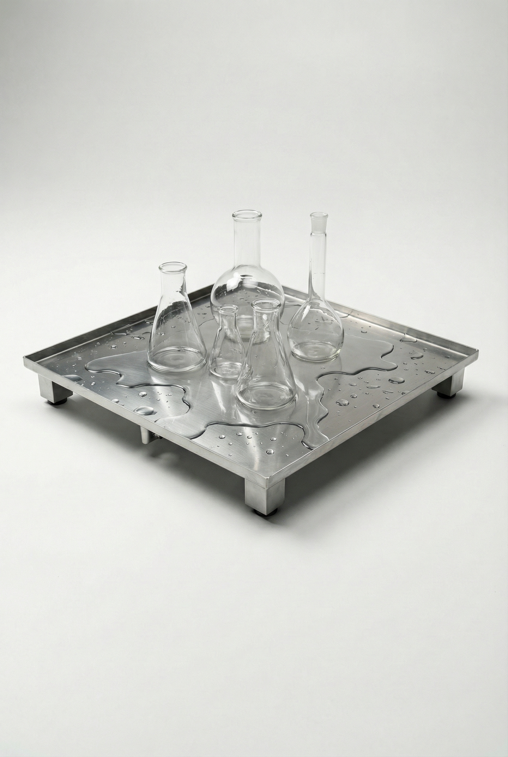 Столешница выполнена в виде приёмного лотка, обеспечивающего сбор пролитой жидкости с дальнейшим сливом через дренажное отверстие. За счёт такой конструкции реализована возможность сбора пролитой воды или иной жидкости с дальнейшим сливом через сливной штуцер в накопительную ёмкость либо канализацию, что значительно упрощает работу с водой и водными растворами.